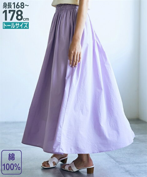 スカート ロング丈 マキシ丈 トールサイズ レディース 綿100% ウエスト シャーリング マキシ くすみカーキ/ブラウン系/ライトパープル LL/3L ニッセン nissen