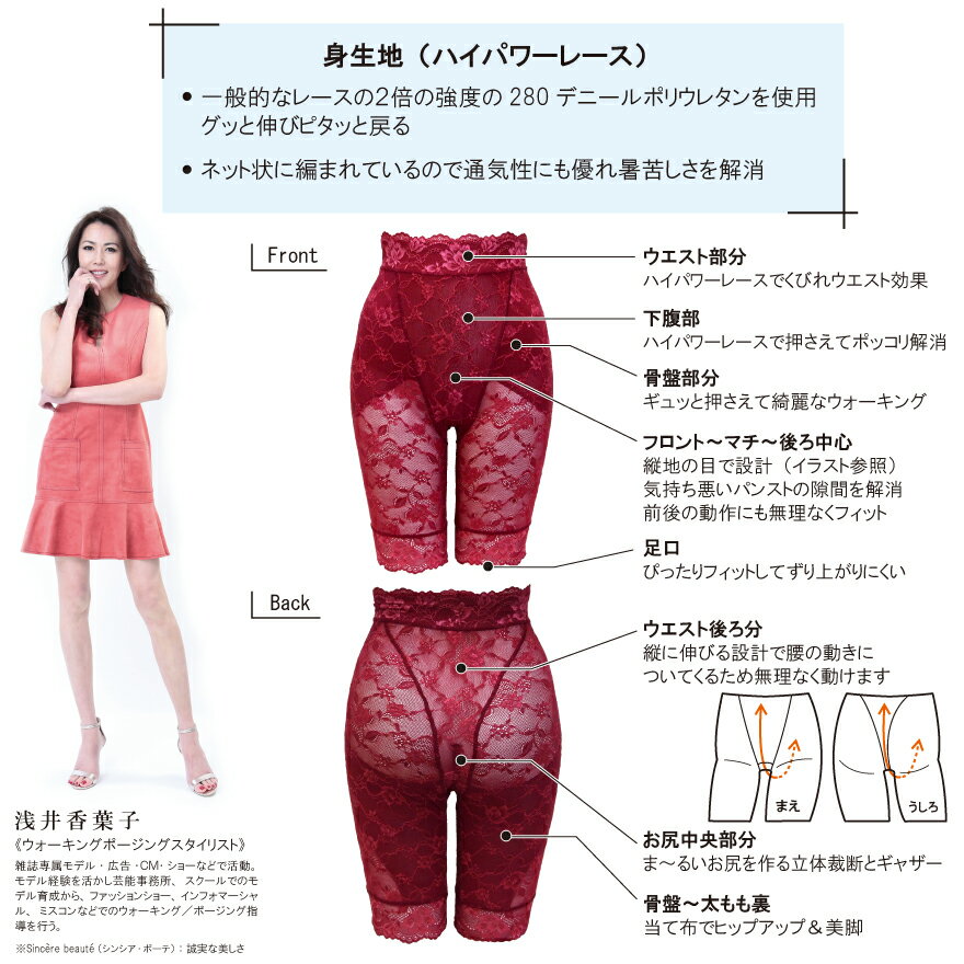 カラー スキンベージュ・ワイン・ブラック サイズ Мサイズ (ウエスト64-70 ヒップ87-95cm) Lサイズ (ウエスト69-77 ヒップ92-100cm) LLサイズ (ウエスト77-85 ヒップ97-105cm) Quality ○品質:ナイロン、ポリウレタン(日本企画・中国製) 備考 ※濃色は色の淡いものと分けて洗い、洗濯後はただちに干してください。