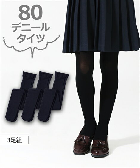 タイツ キッズ 80デニール 3足組 黒 125〜145/140〜160 ニッセン nissen
