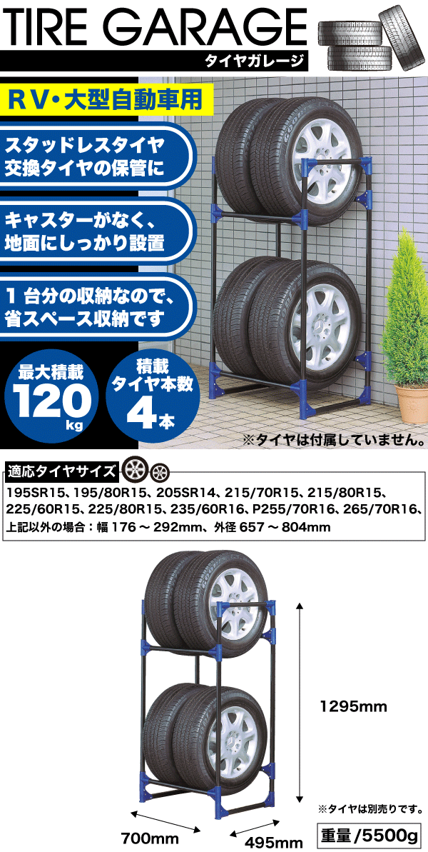 タイヤ収納 収納の目安:大型ミニバン・SUV用タイヤ(4本) 快適 タイヤラック