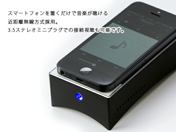 スマートフォンを置くだけで音楽が聴ける近距離無線方式採用。